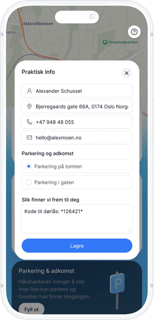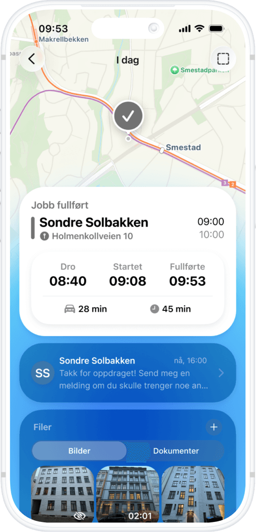 The customer shares access, parking, photos and context ahead of the visit, so nothing catches you off guard.
